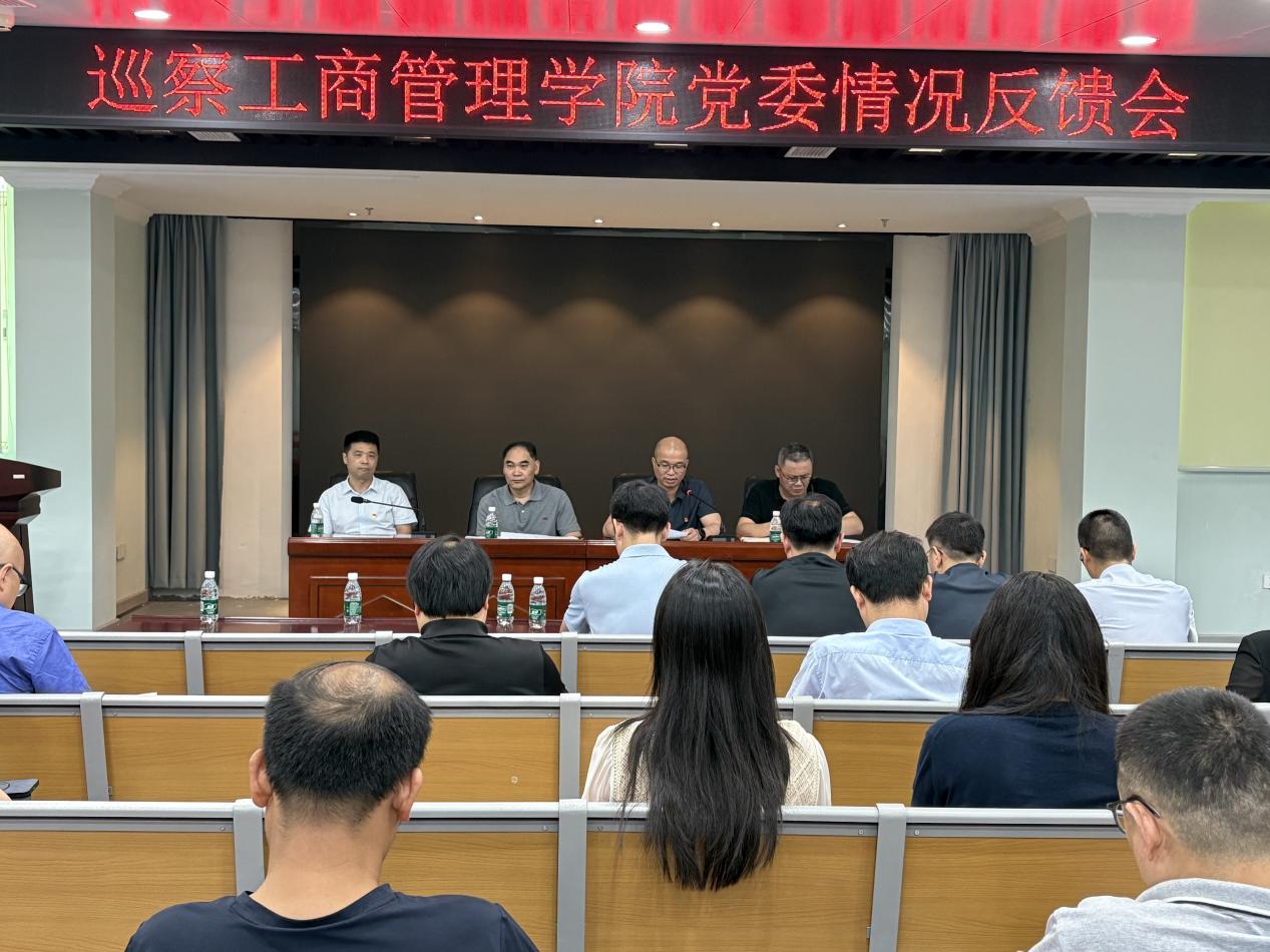 李庭志代表巡察组反馈巡察意见,肯定了公司党委能够坚持以习近平新时代中国特色社会主义思想为指导,对在推进学科稳步向前发展、构建富有侨校特色的工商管理学科体系、打造国家级教师团队及全国高校“双带头人”教师党支部书记工作室等方面取得一定成绩;同时指出学院班子、教师队伍建设、境外生培养、落实全面从严治党和新时代党的基层组织建设等方面的不足,提出建议。