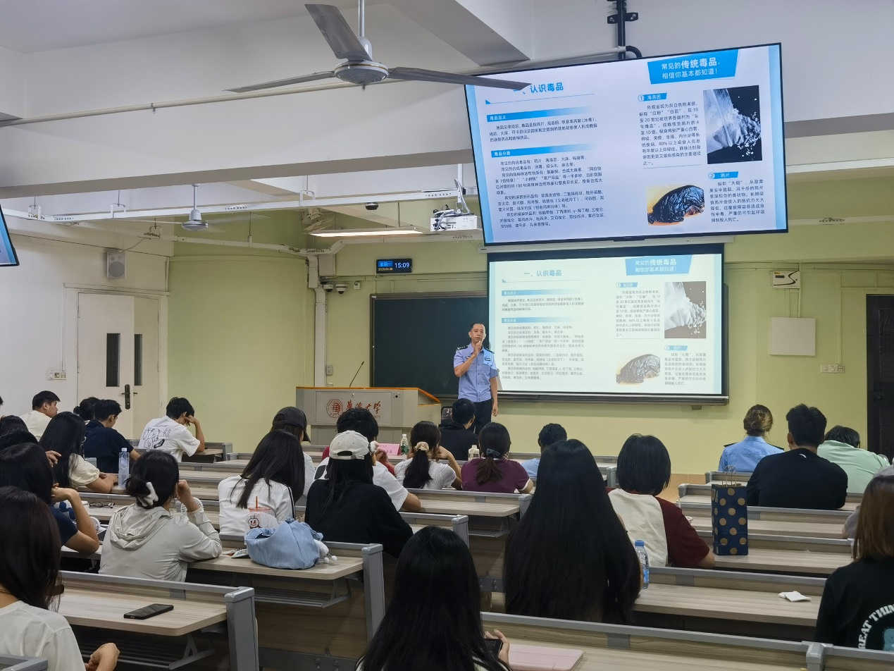 为积极响应我国第十五个全民禁毒宣传月号召,切实加强境外生法纪安全教育,6月30日,丰泽公安分局禁毒大队郑金溪警官受邀走进经管楼2-3教室,为威廉希尔williamhill官网港澳台侨员工及外国职工作专题禁毒知识宣讲。