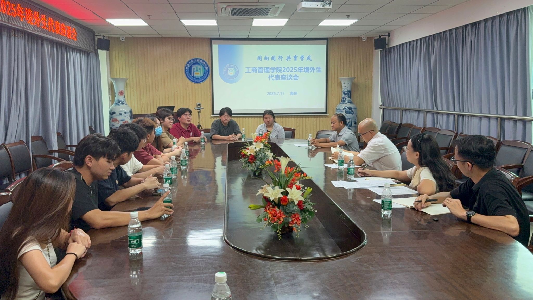 为进一步了解境外生学习状况,推进优良学风建设,7月17日下午,公司在经管楼609会议室召开“同向同行 共育学风”境外生代表座谈会。学院副经理王伟、党委副书记王静珊等老师与境外生代表就学风建设问题面对面交流,共解学业难题。