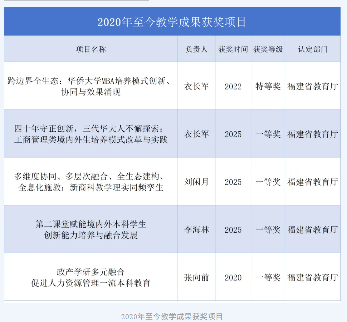 公司坚持将科研能力转化为教学改革与人才培养的实际成效,形成了多维度成果突破。近年来,学院先后获得福建省本科教学成果奖特等奖、一等奖、二等奖等多项省级荣誉,在案例教学、实践体系构建和数智化课程创新等方面形成可复制、可推广的模式。同时,学院获批国家级课程思政教学名师和教学团队一个,《市场营销》课程分别获省级、部级课程思政示范项目,《MBA会计学》课程获省级课程思政示范项目,将价值引领融入新商科课程体系之中,标志着学院在科研赋能教学质量提升与育人体系完善方面实现了高质量跃升。