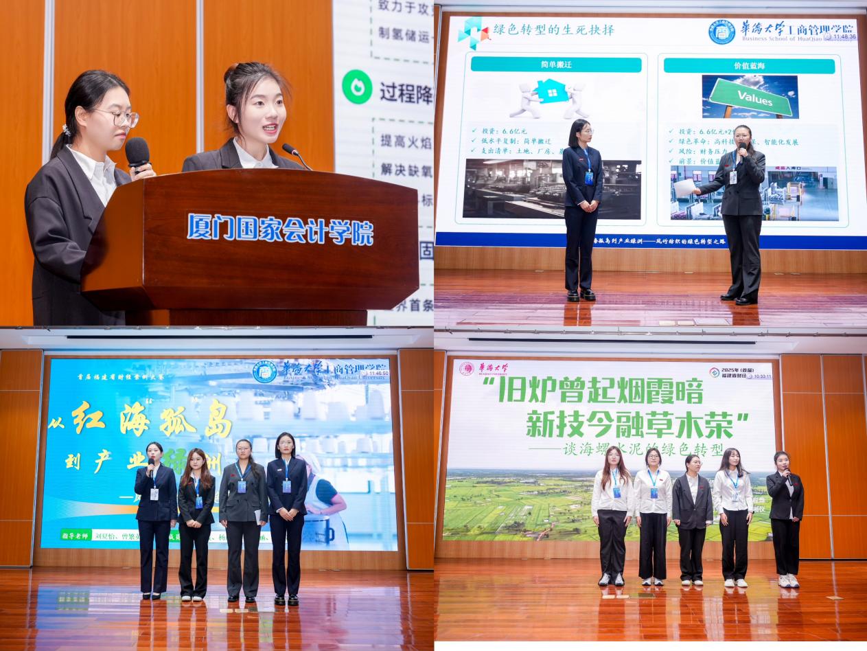本届大赛由福建省教育厅主办,厦门国家会计学院承办。厦门大学、福州大学、威廉希尔足球官网、福建农林大学、厦门国家会计学院等多所高校共计69支队伍报名参赛。大赛以“绿色经济与产业可持续发展”为主题,公司参赛团队围绕大赛主题开展深入研究。其中《从“红海孤岛”到“产业绿洲”——凤竹纺织的绿色转型之路》(指导老师:刘夏怡、曾繁英)和《“旧炉曾起烟霞暗,新技今融草木荣”——谈海螺水泥的绿色转型》(指导老师:邵志高)荣获大赛二等奖。此外,团队成员还凭借出色的表现荣获“最佳人气奖”。获奖案例从传统纺织业和建材业的绿色转型实践入手,深入剖析了企业在绿色技术创新、循环经济模式构建等方面的探索与成效。