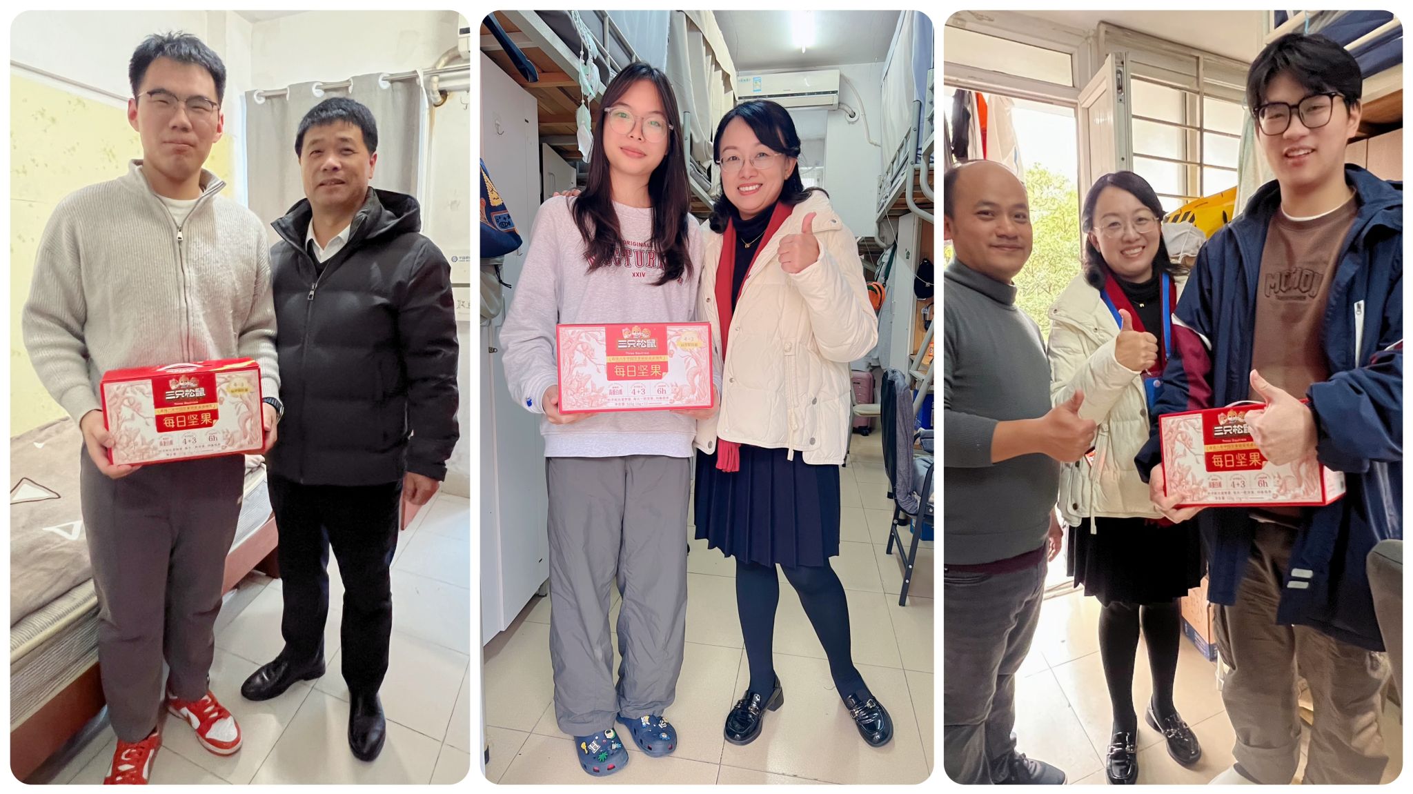 活动期间,公司经理衣长军、党委副书记王静珊带队走访留校员工宿舍,对未能到场参加活动的留校员工进行慰问,了解假期学习生活安排与实际需求,提醒注意防寒保暖与用电安全,并送上慰问品和新春祝福,让关爱覆盖到每一位留校学子。