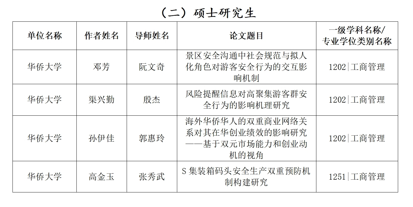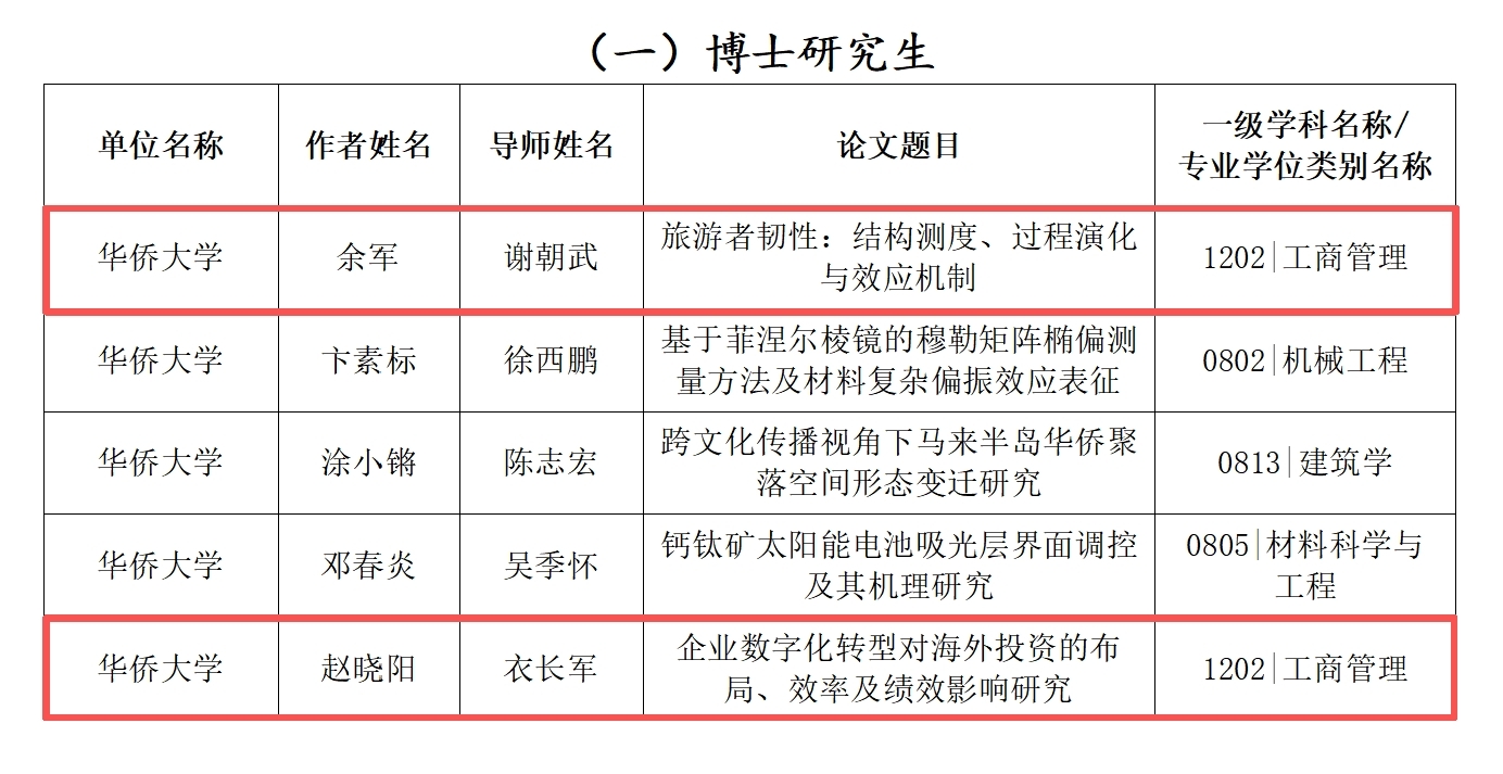 近日,在福建省教育厅发布的《关于2024年福建省研究生优秀学位论文评选结果的公示》中,威廉希尔足球官网工商管理学学科共有2篇博士研究生学位论文,4篇硕士研究生学位论文(学术型硕士论文3篇,专业硕士论文1篇)获评2024年福建省研究生优秀学位论文。