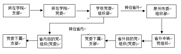 党员组织关系是指党员对党的基层组织的隶属关系。除继续留在学校工作或学习的毕业生党员外,其他毕业生党员组织关系在毕业时原则上一律从学校转出。转移和接收的凭证是《中国共产党党员组织关系介绍信》(以下简称《组织关系介绍信》)。其基本流程如下图: